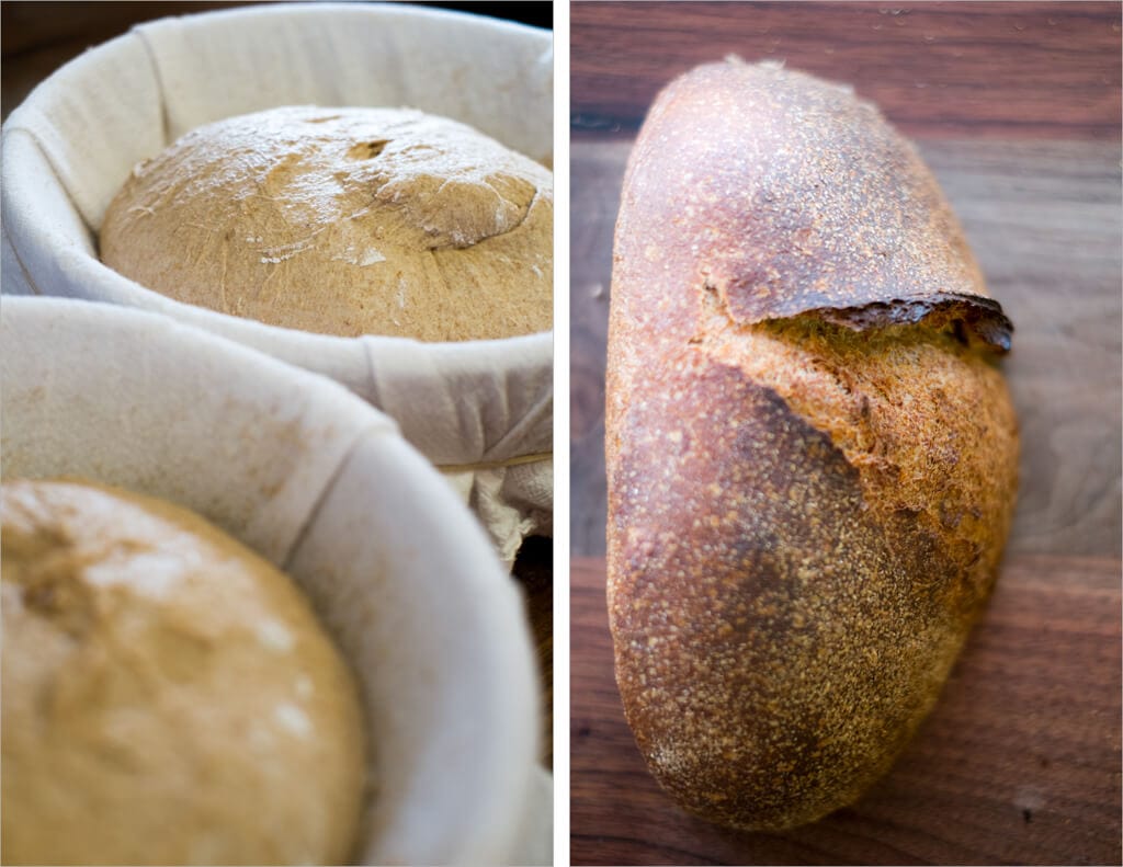 I decided to do both whole wheat sourdough loaves as boules for this recipe. Creating a boule for me is much more straightforward and I didn’t want to handle the dough too much. I’d recommend you take this course as well.