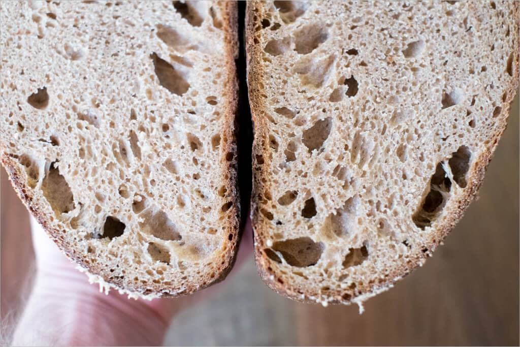 In addition to these troublemakers reducing overall rise, they also absorb much more water than just the endosperm. We’ll have to compensate for this by increasing the overall hydration of the dough.